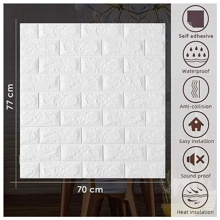 Revestimiento Adhesivo 3D Ladrillo Blanco x 5 unidades